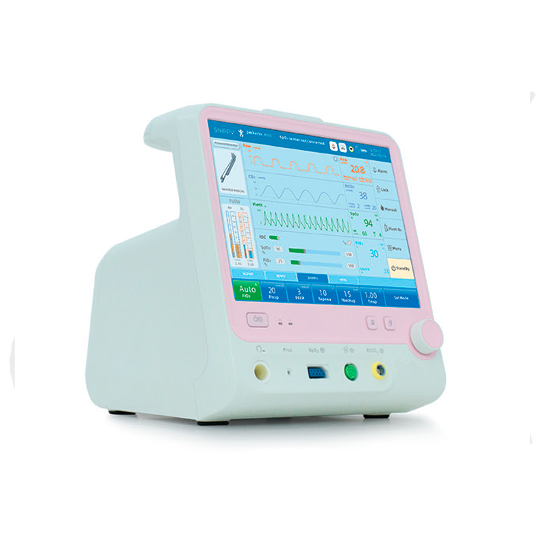 - Спеціальні функції: Ручний режим, Flus O2, IOC, авто FiO2, режим очікування, блокування екрана, утримання вдиху, утримання видиху, зітхання, комплаєнс, калібрування