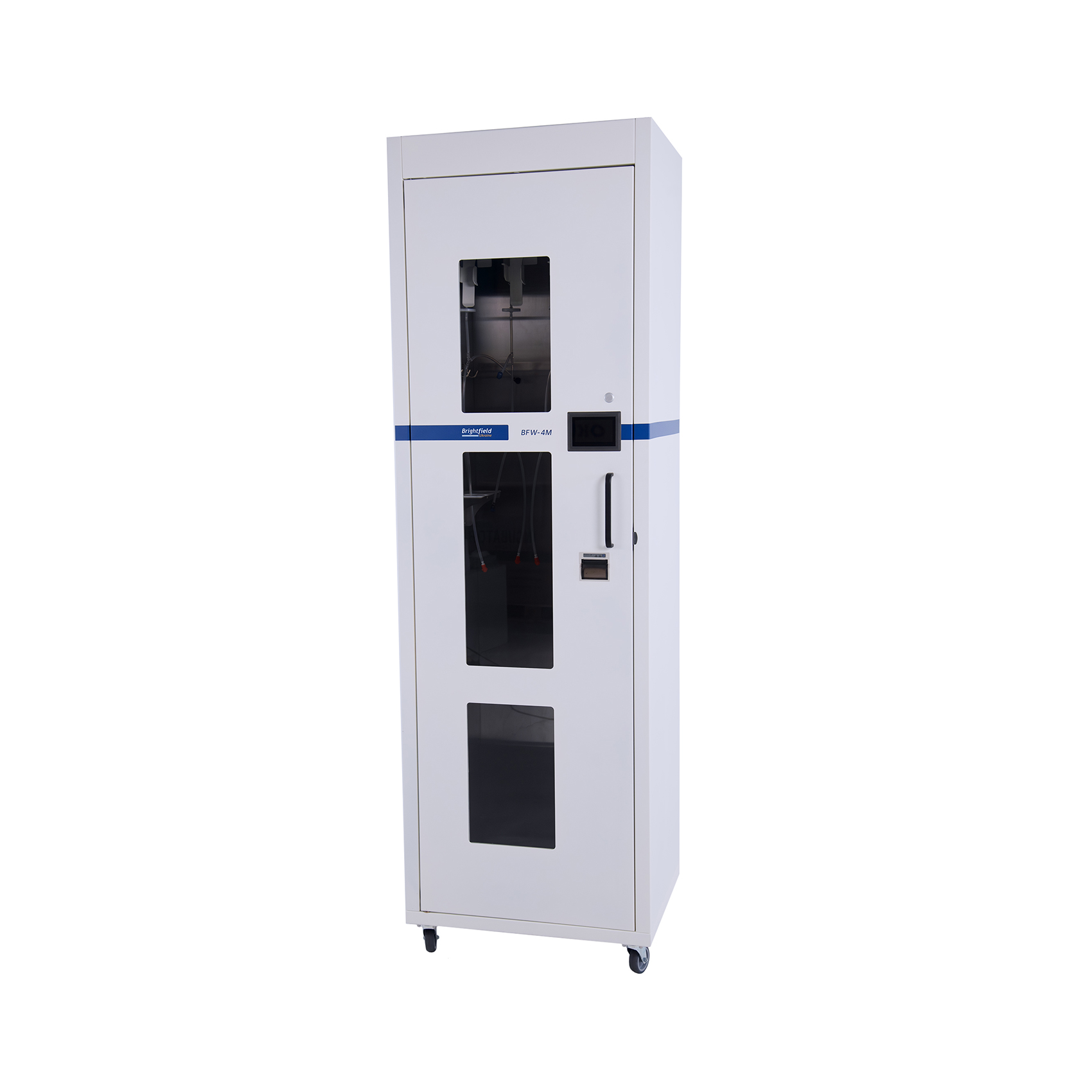 Організація внутрішнього простору дозволяє зберігати до 4 ендоскопів одночасно. Мікропроцесор підтримує належну вологість і температуру, і ви можете контролювати цей процес за допомогою сенсорного світлодіодного дисплея.