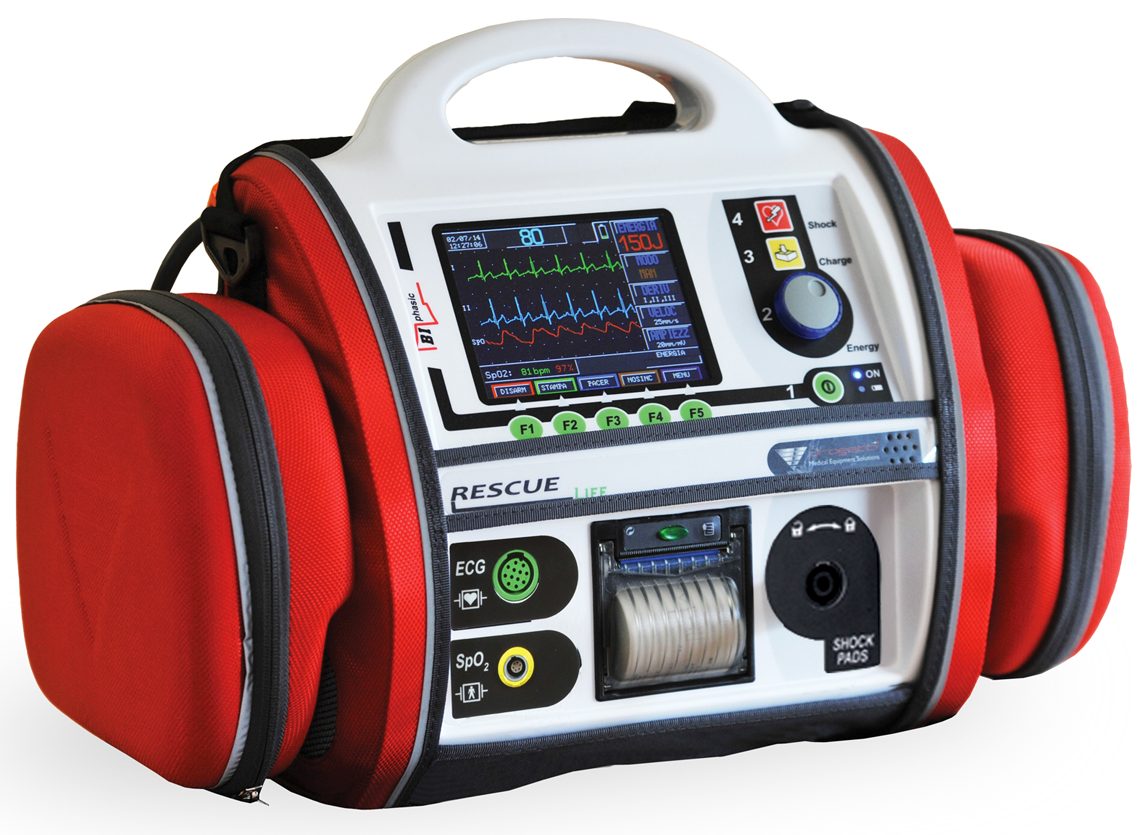 Дефібрилятор RESCUE LIFE - біфазний дефібрилятор з багаторазовими електродами та кольоровим LCD дисплеєм з діагоналлю 5/7 дюймів для надання першої медичної допомоги при зупинці серця й усунення аритмій несумісних з життям.