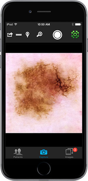 Панель приложения на сенсорном экране максимально оптимизирована для проведения фотосъемки и обработки данных. Приложение легкое в управлении и адаптировано к процессу и задачам дерматоскопии.