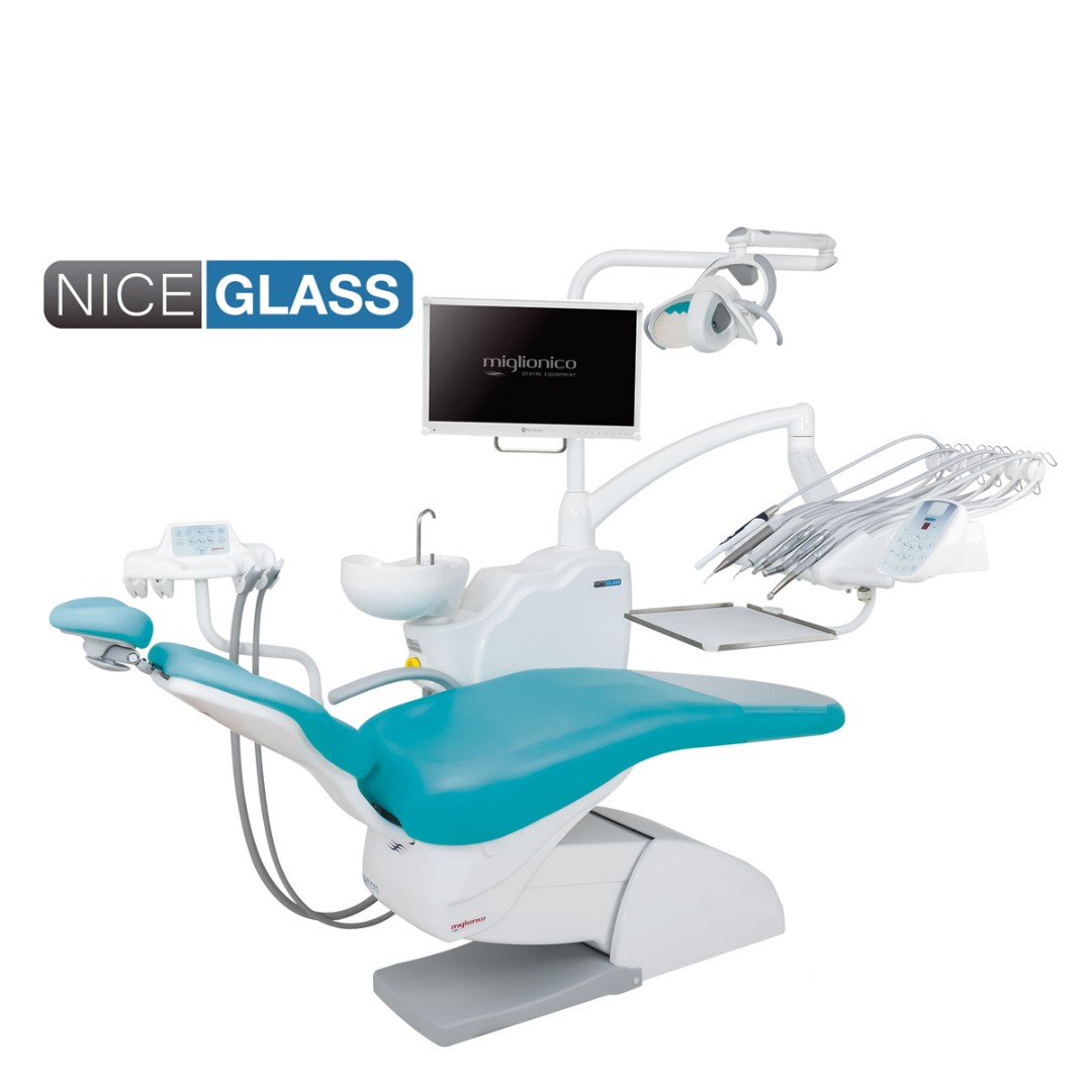 Стоматологическая установка Nice Glass – стоматологическая установка элитного класса с интегрированным персональным компьютером и монитором с диагональю 17 дюймов. Установка выпускается в нескольких конфигурациях: