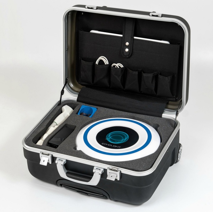 - Эксплуатационная гибкость. Прибор можно использовать в портативном варианте. Основной модуль EchoS имеет компактные размеры, что дает возможность проводить исследования в любых обстоятельствах. Денситометр подключается к ноутбуку и сканирование проводится по стандартному протоколу.