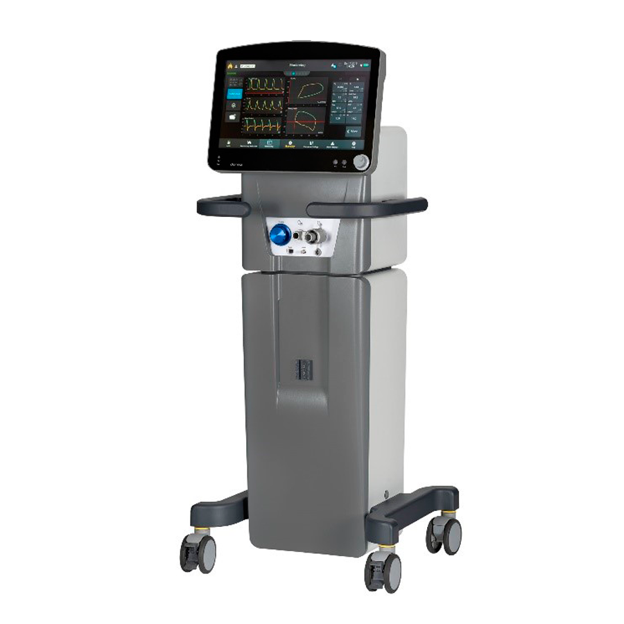 Оборудование обеспечивает уход за пациентами, способными или неспособными делать собственные дыхательные усилия. Сенсорный экран диагональю 18,5 дюйма отображает все параметры выдоха пациента в форме волны. Устройство оснащено электронным блоком питания, который подключается к питающей сети, а также может работать от аккумулятора.