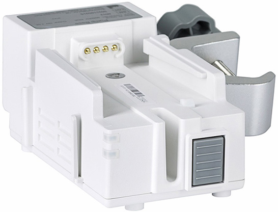 Энтеральная помпа рассчитана на работу стационарного и автономного источников питания. Встроенный аккумулятор рассчитан на 8 часов непрерывной работы. Данные об источнике питания и уровне заряда аккумулятора отражаются на передней панели прибора